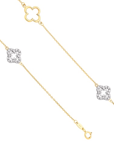 CZ BRACELET - 9CT YELLOW GOLD FOUR LEAF CLOVER BRACELET